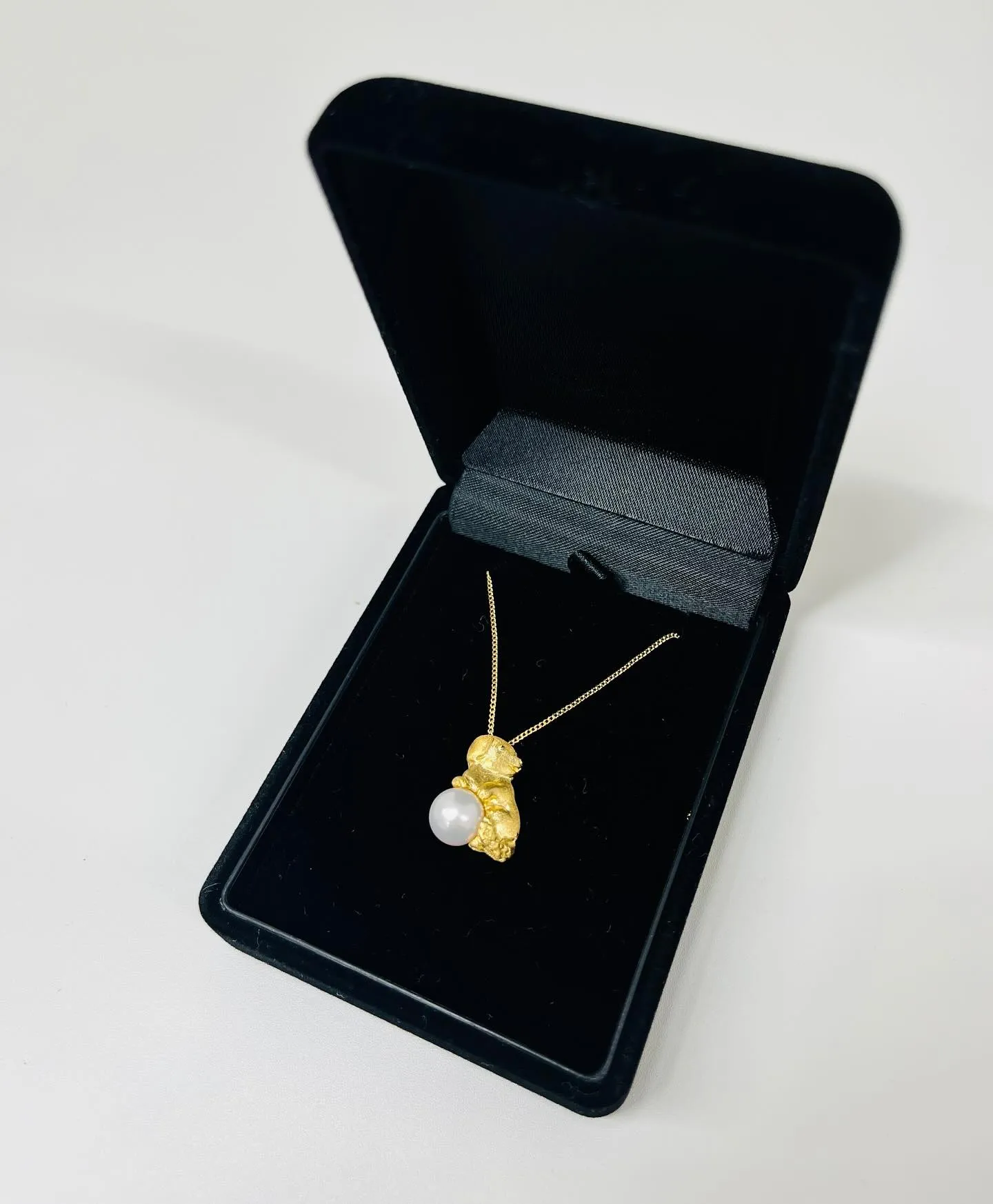 可愛い犬のモチーフにパールの付いたネックレスを