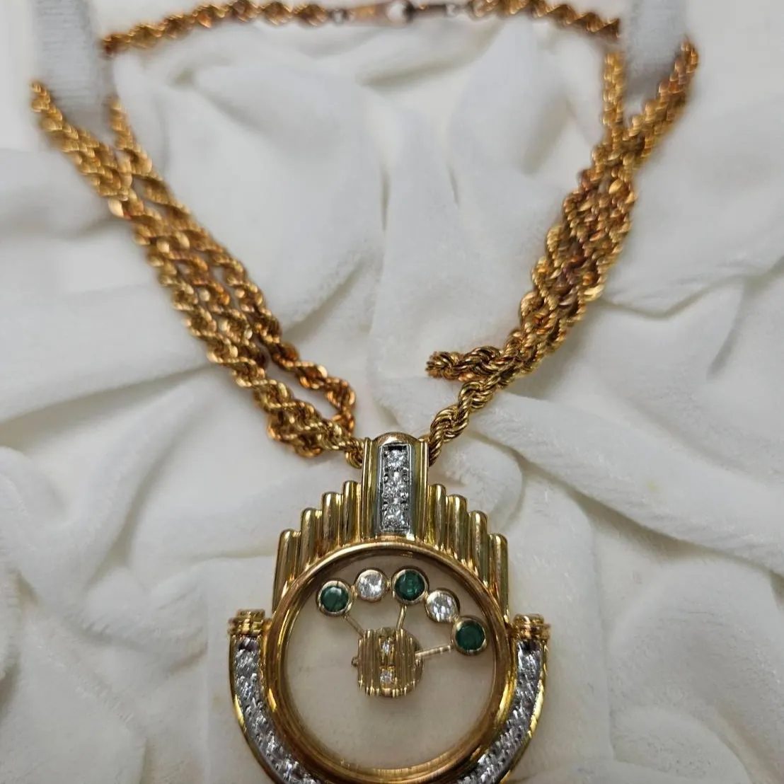 PT900/K18エメラルドとダイヤモンドがあしらわれた豪華なペンダントネックレスをお買い取りさせていただきました✨